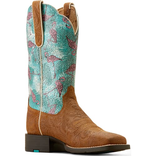 Women's Round Up Western Boots - Chestnut/Flamingos